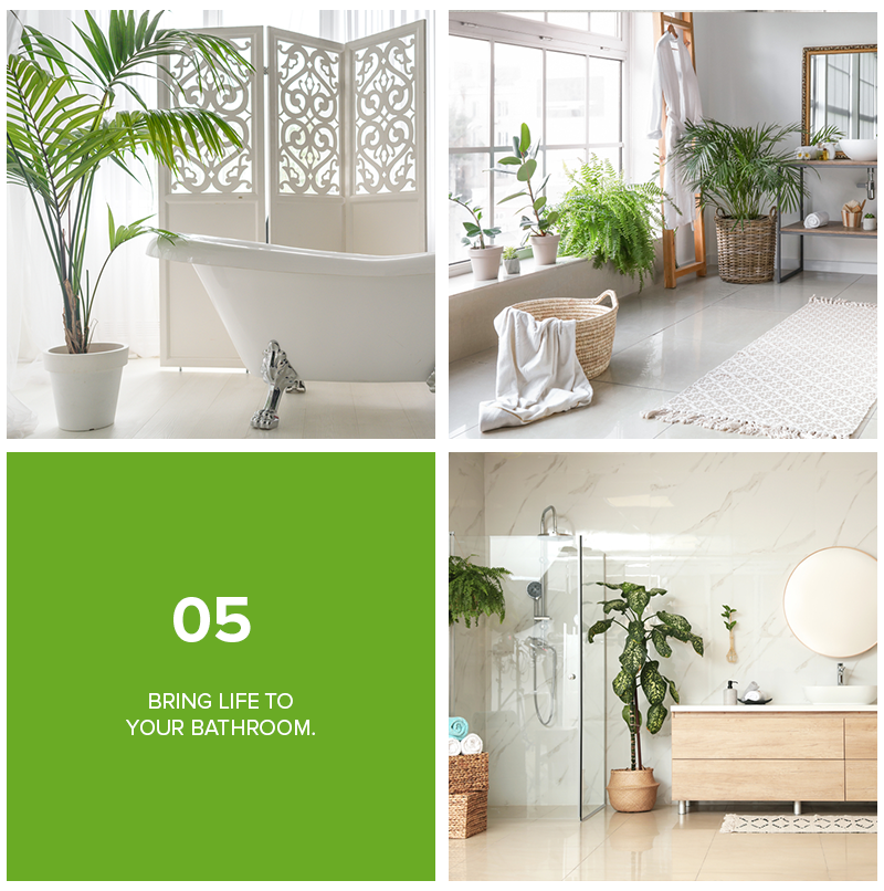 Plant life can pop in many areas of your home—even in your restroom. Especially if you're looking for ways to improve the look of your boring bathroom, adding a few potted plants can add a soft, warm layer to all the hard materials. Some plants that will feel perfect in a bathroom or walk-in shower include peace lily, sansevieria or snake plant, and spider plant. The bonus is, even if you think you have a black thumb, these plants will thrive in low light and warm temperatures. Also, the moisture created from your daily bath can help your leafy friend stay alive even with less effort.
